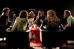 Pendant une période, une lectrice nous accompagne sur scène : elle lit des adaptations françaises de mes textes entre les chansons. C’est Pascale, qui deviendra Mme Captain Bob. On l’invite aussi régulièrement dans l’émission, pour lire du Laetitia Sadier, par exemple. Si on nous avait dit à l’époque qu’on tisserait un jour des liens d’amitiés avec cette dernière, on se serait marré, incrédules.