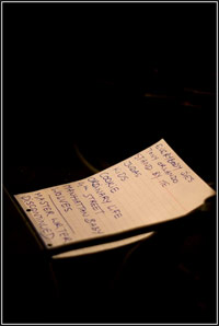 Notre aimable troupe revient pour le rappel avec "un nouveau morceau qu'on ne connaît pas et qu'on ne sait pas jouer, ça s'appelle "nouveau morceau". Mouais... Sur la setlist, ça s'appelle quand même "Master Writer" (une réponse aux Stereophonics ?). PacoVolume n'en rate pas une : "Si vous aimez vous pourrez dire que vous étiez là, sinon pas la peine de dégoûter les autres". Cette nouvelle compo annonce-t-elle un virage power rock ? C'est en tout cas fort réussi, avec un surprenant refrain ("je t'aime maman") qui ailleurs frôlerait l'overdose de sucre est ici très touchant.