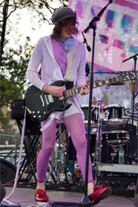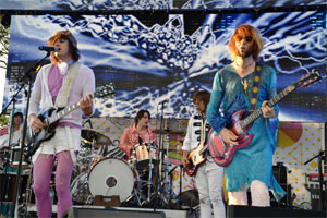 En ce week-end d'ouverture de la coupe du monde de rugby, on ne s'étonnera pas de voir les néo-zélandais Connan Mockasin livrer le premier vrai concert de la journée. Leur second disque (Forever Dolphin Love) est d'ores et déjà une des belles surprises de l'année et on est curieux d'entendre ses perles de pop atmosphérique live. Le chanteur avoue être content d'être en France et remercie chaudement le public de s'être déplacé car "chez nous, personne ne vient nous voir".