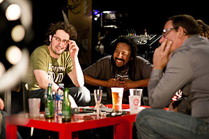 Pendant une période, une lectrice nous accompagne sur scène : elle lit des adaptations françaises de mes textes entre les chansons. C’est Pascale, qui deviendra Mme Captain Bob. On l’invite aussi régulièrement dans l’émission, pour lire du Laetitia Sadier, par exemple. Si on nous avait dit à l’époque qu’on tisserait un jour des liens d’amitiés avec cette dernière, on se serait marré, incrédules.