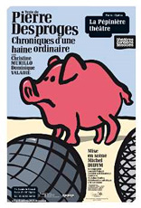 Difficile de reprendre sur scène, après et sans lui, les textes de Pierre Desproges, le clown burlesque à l'air de Pierrot triste et à la scansion de timide frondeur, victime du crabe en 1998, qui a érigé le comique au rang du métaphysique et dynamité les tabous en raison de la singularité de son humour déflagratoire d'une causticité radicale qui ressortit tant du massacre à la tronçonneuse qu'à la bombe à fragmentation et d'une vraie écriture de facture classique.