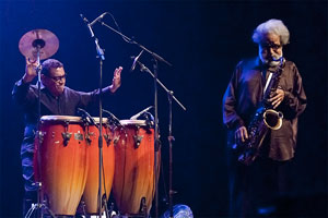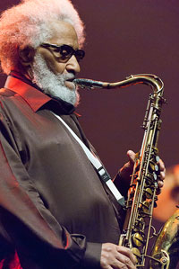 C'est donc une légende de 81 ans, le "Saxophone Colossus" qui arrive sur scène ce soir… doucement, précédé de ses musiciens. Il impressionne, lunettes de soleil, barbe et chevelure fournie blanches comme la neige, sax ténor cuivré patiné au cou. Il ne ressemble pas tout à fait à l'idée que j'avais pu m'en faire en préparant ce concert pendant mes recherches sur le net. Il se dandine sur scène en la traversant et se retournant vers ses comparses de la soirée.