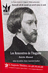 Mais c'est, bien évidemment, en connaissance de cause que Jean-Laurent Cochet propose au public un hommage à Musset dans le cadre des rencontres théâtrales autour d'un auteur qui se déroulent à l'Auguste Théâtre depuis 2011 avec pour interprètes les élèves de son cours.