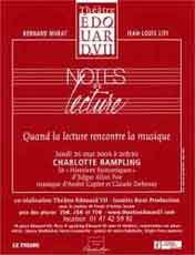 Cela étant, il y a, actuellement, un certain engouement pour les lectures, et le Théatre Edouard VII propose, certains lundis de relâche, des Notes de lecture ou "Quand la lecture rencontre la musique" et a sollicité des comédiens célèbres, essentiellement, des comédiens de cinéma.