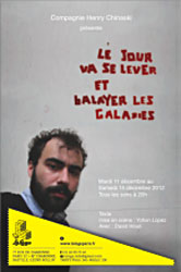 Remarqué lors des représentations publiques au Conservatoire National Supérieur d'Art Dramatique, issu de la promotion 2010, et, plus récemment, dans "Salle d'attente" de Krystian Lupa, David Houri est l'officiant d'un spectacle singulier intitulé "Le jour va se lever et balayer les galaxies" conçu, scénographié et mis en scène par son homologue Yohan Lopez.