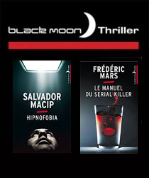 Collection Black Moon ThrillerEditions Hachette Amateur de thrillers, découvrez la jeune collection Black Moon Thriller des Editions Hachette avec notamment les deux excellents titres de mars 2013. Un coup de maître pour l'aguerri français Frédéric Mars et une révélation avec le coup d'essai de l'espagnol Salvador Macip. De quoi perdre la boule et le sommeil !