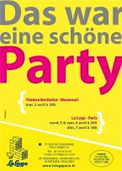 Son deuxième opus, "Das war eine schöne Party" fragment d'une partition elle-même fragmentaire "Comme un zeppelin en flammes dans son vol de retour" de Simon Diard, qui constituait son premier spectacle reposant sur la technique de la planche-contact pour aborder les différents possibles induits par l'intervention de l'évènement imprévisible qu'est la catastrophe aérienne, procède de manière macroscopique en faisant un arrêt sur image qui est celle de la mort d'un personnage prénommé Margarete que l'auteur qualifie de "temps zéro".