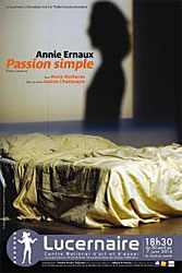 Ainsi, la partition résultant de l'adaptation du texte "Passion simple" de Annie Ernaux participe davantage de l'analyse de soi au travers des liens entre le désir et l'écriture et la dissection d'un processus d'écriture que de l'histoire d'une passion incandescente et consomptible dont au demeurant les implications affectives demeurent allusives et les exultations du corps tempérées.
