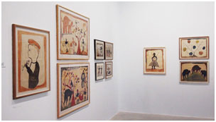 Au sous-sol se trouvent peut-être les pépites de l’exposition. En 1926, alors que le Congo est encore une colonie belge, l’administrateur Georges Thiry, passionné d’art, repère sur des cases des peintures : elles sont l’œuvre d’Albert Lubaki, ivoirier de métier.