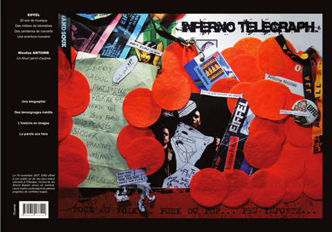Petit retour aujourd’hui sur un livre sorti il y a 9 mois. Le projet a été lancé sur Eiffelnews, site "officiel" du groupe Eiffel. Nicolas Antoine, organisateur de la street team et intime du groupe avait pour projet d'écrire une biographie du groupe, en utilisant le site participatif Ulule. Le bouquin s'intitule Inferno Telegraph, en référence aux paroles de "Hype", titre emblématique du groupe, joué à chaque concert.