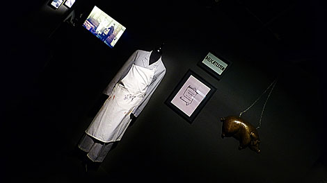 Qualifiée de "cabinet de curiosités", la monstration s'ordonne donc autour de l'iconographie de chaque opus filmique en présentant outre les story-boards, dessins de décor, costumes, photos de tournage et extraits de films, leurs objets et accessoires emblématiques.