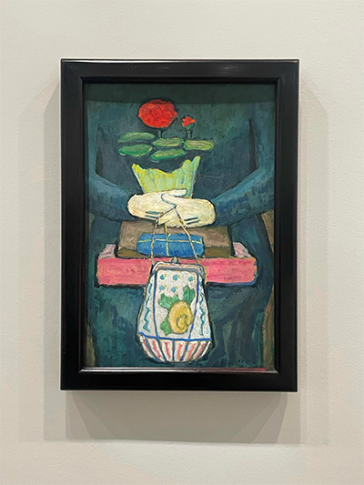Parmi les moments les plus saisissants de l'exposition : ses oeuvres de 1909 à 1914, années d'intense fécondité, où elle capte un monde en suspension, entre archaïsme et modernité, entre figuration et abstraction.