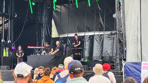 Pendant ce temps-là, scène Monts, les locaux de Dub Inc proposent leur reggae. La foule est compacte et dense. Je pense que les 18.000 personnes étaient là pour eux (enfin presque), si j’en crois la grande quantité de tee-shirts observés. Discours d’amitié, d’amour et contre le racisme sont au menu. Je vais me répéter, je n’aime pas spécialement le reggae, mais force est de constater que le discours engagé, militant mais aussi pacifiste de Dub Inc séduit le public. Ils n’ont pas pu venir l’année dernière et avaient à cœur de mettre les bouchées doubles. Kayxe me confirme que ça a bien été le cas.
