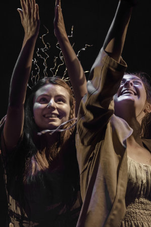 Tous sont interprétés avec finesse et incandescence par des jeunes comédiens épatants issus du Conservatoire de Metz-Nancy : Mélina Fagot, Victoria Fagot, Romane Wicker et Yann Malpertu. Tandis que le musicien Guillaume Jullien, à gauche de la scène, tente de retranscrire l'assourdissant vacarme dans leurs têtes et leur coeurs.