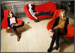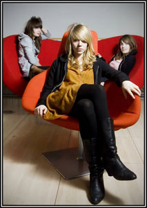 Pas de rappel de qui sont ces quatre Baby Rockeuses (étonnamment au nombre de trois durant l'interview), qui évoluent dans un drôle d'endroit. "Tu peux pas fumer ici!" m'informe Marie la guitariste avec de grands yeux bleus très perturbants, "Merci, mais je suis tellement mort qu'il faut que je me donne un minimum de contenance". Et à moi de faire l'interview comme un gosse, à se balancer sur une chaise design, entouré de l'armée de disques d'or (du pire au meilleur, de Jean Jaques Goldman à...). et après nous devait passer guitariste.com... Quel drôle de tableau...
