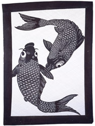 Sont également admirables les pochoirs en en papier de mûrier imprimé de jus de kaki utilisés pour décorer les tissus et un impressionnant brûle parfum à taille humaine représentant Kotuki, le dieu de la longévité.
