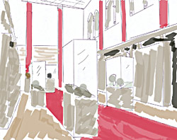 La lumineuse scénographie de Loretta Gaitis, dans les tons blanc et gris taupe rehaussé de rouge, aménageant de manière judicieuse l'espace d'exposition qui n'est pas aisé avec son long couloir introductif, met particulièrement en valeur la belle série d'études tendant à restituer l'expression d'angoisse à l'approche de la mort certaine qui fascinait Rodin.