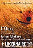 Sous le titre "L'ours", la compagnie Appellation Théâtre Contrôlée propose trois pièces en un acte de Tchekhov qui sont souvent montées car ces "plaisanteries" en un acte, comme les surnommait lui-même leur auteur, de la tragédie à la comédie, du burlesque à la farce, laissent, en terme de registre, une grande latitude au metteur en scène et aux comédiens.