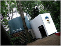 Avec l’accrochage en façade d’une œuvre de l’artiste national, Hyungkoo Lee, qui travaille sur la notion de norme physique, représentant un homme au visage partiellement déformé qui semble échappé du cabinet d’un docteur Mabuse spécialisé dans l’orthodontie-ophtalmologie.