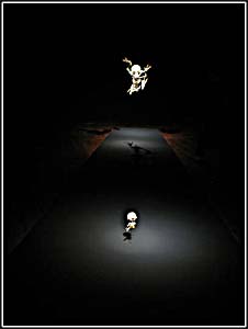 Après avoir franchi le seuil, le choc visuel est total avec deux squelettes savamment éclairés qui apparaissent de manière fantomatique dans la pénombre totale, deux squelettes d’étranges créatures, le grand suspendu dans les airs prêt à fondre sur le petit qui coure au sol.