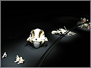 Le passage dans la pièce adjacente dévoile les secrets de l’énigme. Dans les vitrines sont exposés, à la manière de collections anthropologiques, sous le titre "Animatus series" les squelettes ….des personnages de dessins animés !