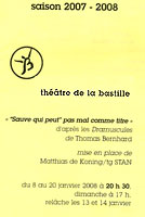 Compagnie dont un des membres, Waas Gramser, fut le co-fondateur, en 1989, du collectif tg STAN, qui a pour charte le refus de tout dogmatisme, S(top) T(hinking) A(bout) N(ames), la déconstruction de l'illusion théâtrale et le théâtre contestataire, qui est actuellement, à nouveau, à l'affiche du Théâtre de la Bastille avec "Sauve qui peut, pas mal comme titre" adapté des "Dramascules" de Thomas Bernhard.