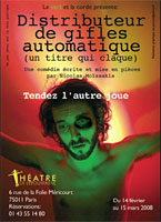 Comédie écrite et mise en scène par Nicolas Moïssakis, avec Guillaume Ferrandez, Céline France, Gwen Lebret, Clotilde Pierre, Frédéric Souterelle et Nicolas Moïssakis..