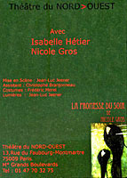 Comédie dramatique de Nicole Gros, mise en scène de Jean-Luc Jeener, avec Isabelle Hétier et Nicole Gros.