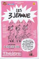 La première représentation des 3 Jeanne a eu lieu en 1976 et ce fût un véritable raz de marée, un succès immense, des sketches devenus des classiques. Plus de 25 ans après, elles reviennent avec un florilège des spectacles originaux avec la même affiche illustrée par Reiser.