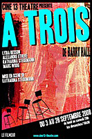 "A trois" se présente comme une véritable farce où ces trois adultes désabusés manient un texte franc et drôle. Ils se répondent avec précision et vivacité. Judicieusement, leurs mots se mêlent pour offrir des instants rythmées et musicaux. Ils crient, rient, pleurent et jouissent.