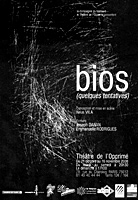 Avec "Bios (quelques tentatives)" elle poursuit son chemin, un chemin ambitieux et exigeant, avec un tissage de textes de deux auteurs, Joseph Dahan et Emmanuelle Rodrigues, sur la nature fragmentée du monde, qu'elle nomme "bulles de sens", la difficulté de s'inscrire dans une société chargée des cendres d'hier et placée sous le signe d'un matérialisme qui vampirisme toute velléité d'envol pour ceux qui sont nés trop tard.