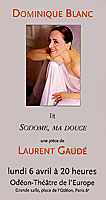 Dominique Blanc donne voix à la parole de cette femme qui va narrer les derniers jours de sa ville, "Sodome, ma douce", qu'elle décrit comme nouvel eden et dont elle sera le bras armé d'une vengeance inéluctable.