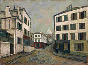 A la peinture robuste et éclatante de vie et de couleurs de Suzanne Valadon, femme bohême qui aime la vie et les hommes et peint des scènes d'intérieur, portraits et natures mortes, répond la peinture asthénique de Maurice Utrillo qui vit reclus et peint, d'après des cartes postales, des paysages sans âme qui vive.