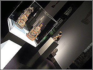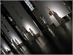 Ressortissant principalement de la statuaire, les oeuvres sont présentées sur socle sans vitrage, sauf pour les petites pièces, dans les deux espaces structurés par les piliers centraux qui, là encore, qui favorise leur proximité, concourent heureusement à la monstration choisie par le commissaire qui tient à l'évolution de la représentation de la maternité.