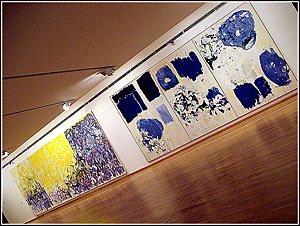 Le polyptyque, tendance en vogue dans la peinture américaine de l’époque, peinture panoramique ou séquentielle ? A ce sujet, un film inédit en France, réalisé en 1976 par Angeliki Haas, et diffusé au sein de l’exposition, montre la difficulté de l‘artiste à commenter sa propre œuvre et donne un éclairage intéressant notamment sur la prédilection pour ce format que Joan Mitchell explique comme la simple résolution de sa difficulté à peindre des toiles horizontales de grand format.