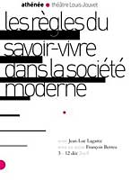 Deux Lagarce, sinon rien ! Une bonne raison pour aller voir le diptyque lagarcien au Théâtre de l'Athénée-Louis Jouvet qui après un Lagarce dans son jus, la reprise de "La cantatrice chauve" dans sa mise en scène originale avec la même distribution que lors de sa création en 1991, propose "Les règles du savoir-vivre dans la société moderne".
