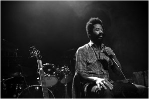 Le caractère biblique des textes souligne en réalité l’inconfort d’une monotonie. Ce concert ressemble à une messe païenne : les musiciens imitent une époque où noirceur et lenteur épuisaient l’attitude punk, pulvérisant les reliefs d’un rock conventionnel. Si je parle d’"imitation" et non d’"incarnation", c’est parce qu’au-delà de l’effet de mode où le retour constitue la règle, il ne reste que geste mécanique et fausses prétentions.