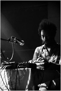 Robert A. Lowe aka a précisé avec Lichens sa dimension musicale. Spécialiste de l’ombre, il parvient sur scène à mêler improvisation et rigueur, réussissant à imprimer son style, à le développer, sans tomber dans une forme répétitive. On a le sentiment de voir un peintre devant sa toile, inventant les couleurs qui lui serviront à composer un tout homogène : organiser sa cohérence, c’est exprimer par le seul moyen des plans la complexité de la lumière, et les contrastes qui la mettent en valeur. Deux longs morceaux ont suffi à dessiner le mystère de cet artiste. Une demi-heure peut sembler court, mais on peut croire que cette musique aurait perdu en force sur la durée : l’énergie se serait éparpillée, la musique aurait perdu une part de son élégance.