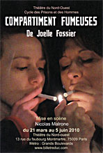 "Compartiment fumeuses" de Joëlle Fossier, c'est une rencontre, une rencontre entre deux femmes, une rencontre improbable, que seule la promiscuité carcérale rend possible, la tragédie ne connaissant pas de frontière de classe, qui va permettre à l'une de se reconstruire et à l'autre de se construire au travers d'un amour inattendu.Pour Suzanne, bretonne fille de marin pêcheur, à la vie précaire, petite délinquante récidiviste pour émission de chèques en bois, la prison est sa deuxième maison, elle en connaît les règles et les failles. Non pas qu'elle ne souffre pas mais la rage au coeur, un harmonica, sa corne de brume, pour s'échapper et un rêve, un yacht, pour le moment en coquillages, constituent ses moyens pour résister et ne pas couler.