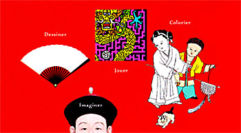 Compte tenu de la spécificité de l'exposition, ce livre intitulé "Chine" a un champ d'intervention un peu plus large et propose des activités manuelles et des jeux d'éveil orienté sur l'iconographie chinoise.