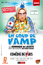 Les Vamps : inutile sans doute de revenir sur la carrière et l'iconograhie du duo comique composé de Nicole Avezard et Dominique de Lacoste qui, dès la fin des années 80, a connu un beau succès avec ses personnages de sacrées mémés en robes tout polyester, tatanes Damart et bas à varices issues de la France profonde des années 60 qui épinglaient joliment les travers de leurs contemporains en revisitant le registre du clown blanc et de l'auguste.Après quelques adieux et rabibochages, les vamps se sont séparées et chacune fait désormais sa vamp en solo. Dominique de Lacoste, après deux seuls en scène classiques où elle s'était extirpée du personnage de la grosse Gisèle, revient sur scène avec un one woman show dans lequel elle ressuscite, pour une nouvelle aventure, un personnage increvable qui lui colle à la peau.