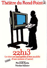 Avec "22 h 13", l'heure aléatoire du coucher d'un artiste contemporain multimedia, Pierrick Sorin invite le spectateur à suivre une passionnante journée de non-création d'un homme qui a décidé d'être artiste mais qui n'a non seulement ni idée, ni talent, ni, a fortiori, génie, mais également rien à dire.