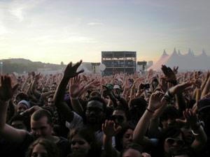 Après un tour au "bout du monde" (havre de paix ombragé et paradis du sandwich à la raclette) puis un remplissage des bouteilles vides au stand de l'eau de Paris, nous retournons sous le Dôme pour écouter Jamie Lidell des jeunes. Affublé d'un t-shirt "The End", l'anglais mène son affaire de main de maître. Très à l'aise et doté d'une voix fantastique, il produit ce qui reste comme l'un des tous meilleurs spectacles de ce festival. Les titres du complexe mais excellent nouvel album (Compass) mettent plus de temps à charmer le public, mais à chaque extrait de Jim (son précédent disque, sorti il y a deux ans), c'est de la folie pure. "Another Day", "Out Of My System" ou "Wait For Me" déclenchent une vague collective de déhanchements. La musique de Jamie Lidell, au carrefour de l'électro et de la soul, habitée et allègre, est aussi passionnante sur scène que sur disque.