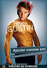 Sur l'affiche de son spectacle "Ajouter comme ami", qui marque son retour solo sur les planches, Didier Gustin s'est offert un faux corps bodybuildé pour se payer la vraie tête, toujours avec un humour tout aussi corrosif qu'il est courtoisement emballé, des cadors de la variété française et de certaines personnalités politico-médiatico-people.