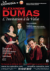 Une jeune veuve, un amant déconfit, un fringant militaire, une ingénue malicieuse, voici les protagonistes de "L'invitation à la valse", comédie sentimentale en un acte dans laquelle Alexandre Dumas décline le quadrille à la manière du vaudeville, que présente la Compagnie Calliopé Comédie après un lever de rideau composé d'extraits des mémoires de ce dernier sur ses débuts d'auteur dramatique.