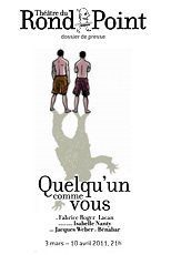Fabrice Roger-Lacan étudie dans "Quelqu'un comme vous", avec subtilité et intelligence, les rouages de l'échange (humain, verbal, social, affectif) et les rapports de force qui en découlent. Deux hommes, qu'a priori tout oppose, se retrouvent dans une situation qui les obligent à se parler.