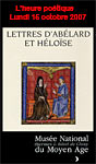 Le 15 octobre 2007 à 19 h, dans le cadre de L'heure poétique, le Musée de Cluny vous propose desextraits des "Lettres d'Abélard et Héloïse" choisis par Michel Zink, membre de l'Institut, professeur au Collège de France lus par Eric Génovèse, sociétaire de la Comédie française, et Audrey Bonnet.