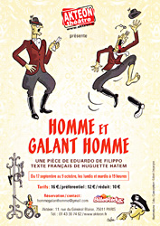La jeune Compagnie Itinér(r)ances, composée de jeunes comédiens formés à l'Ecole Florent, s'est lancée un triple défi en choisissant de monter "Homme et galant homme", une partition du chef de troupe et dramaturge italien Eduardo de Filippo qui tient à la connotation socio-historique de ses pièces, à leur registre théâtral et à l'importance de la distribution.